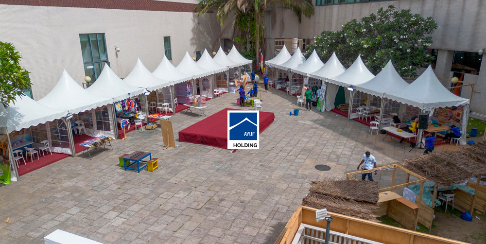Ayuf Holding accompagne les grands événements et les institutions au Sénégal avec des solutions logistiques et structurelles haut de gamme. Leader du secteur de la construction modulaire, bâtiments préfabriqués et structures temporaires dans toute l’Afrique de l’ouest, nous proposons des solutions clés en main : location de tentes, location de chapiteaux, location de stands modulaires, location de mobiliers et matériels événementiels pour des opérations d’envergure nationale.