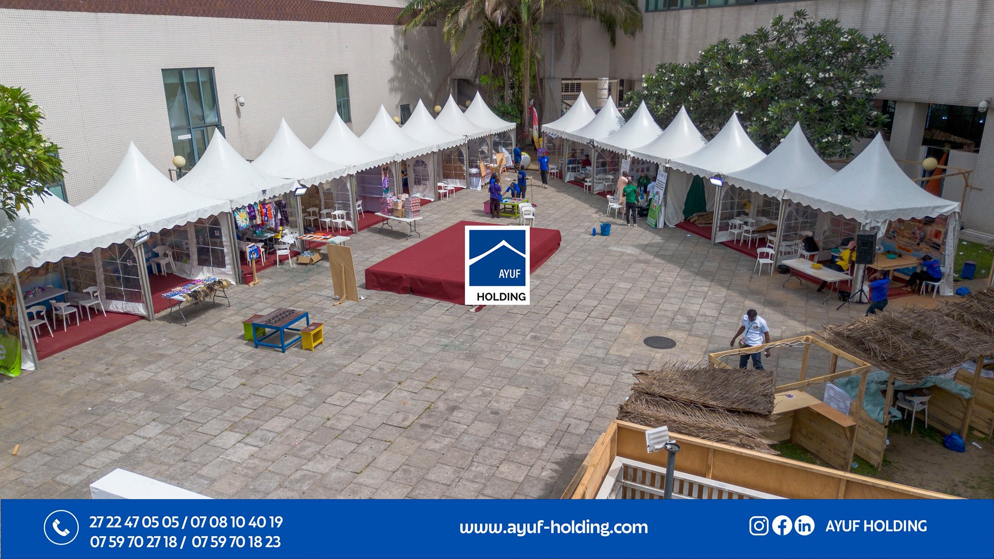 AYUF HOLDING est fier d’assurer la logistique complète de cet événement d’envergure internationale. Chapiteaux, mobiliers, gardens : chaque détail est pensé et exécuté avec rigueur pour offrir un cadre digne des plus grandes manifestations culturelles africaines.